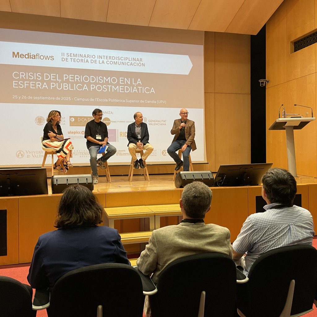Bajo el título “Crisis del periodismo en la esfera pública posmediática”, el campus de Gandia de la Universitat Politècnica de València (UPV) ha acogido la segunda edición del Seminario Interdisciplinar de Teoría de la Comunicación. Este encuentro, organizado por el grupo de investigación Mediaflows, se ha dispuesto “como espacio de reflexión interdisciplinar en el que abordar las transformaciones de la esfera pública en la actualidad, así como del sistema mediático periodístico e informativo”.